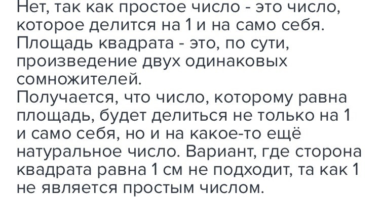 Может ли плозадь квадрата со стороной а быть простым числом? Ответ обоснуйте.