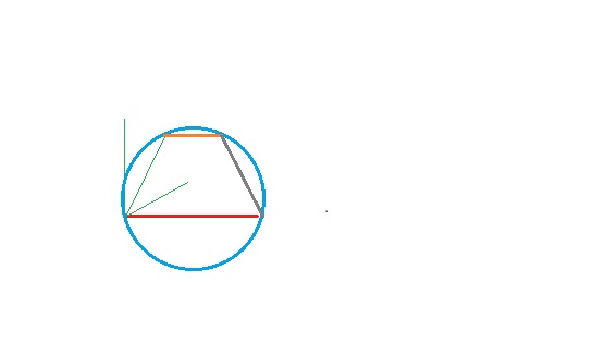 затем второе меньшее основание до соединения с окружностью - оранжевым, (угол будет 180-60=120 градусам, как нам и требуется)