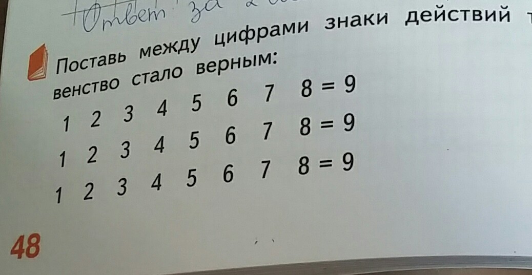 поставь между цифрами знаки действий так, чтобы равенство стало верным.