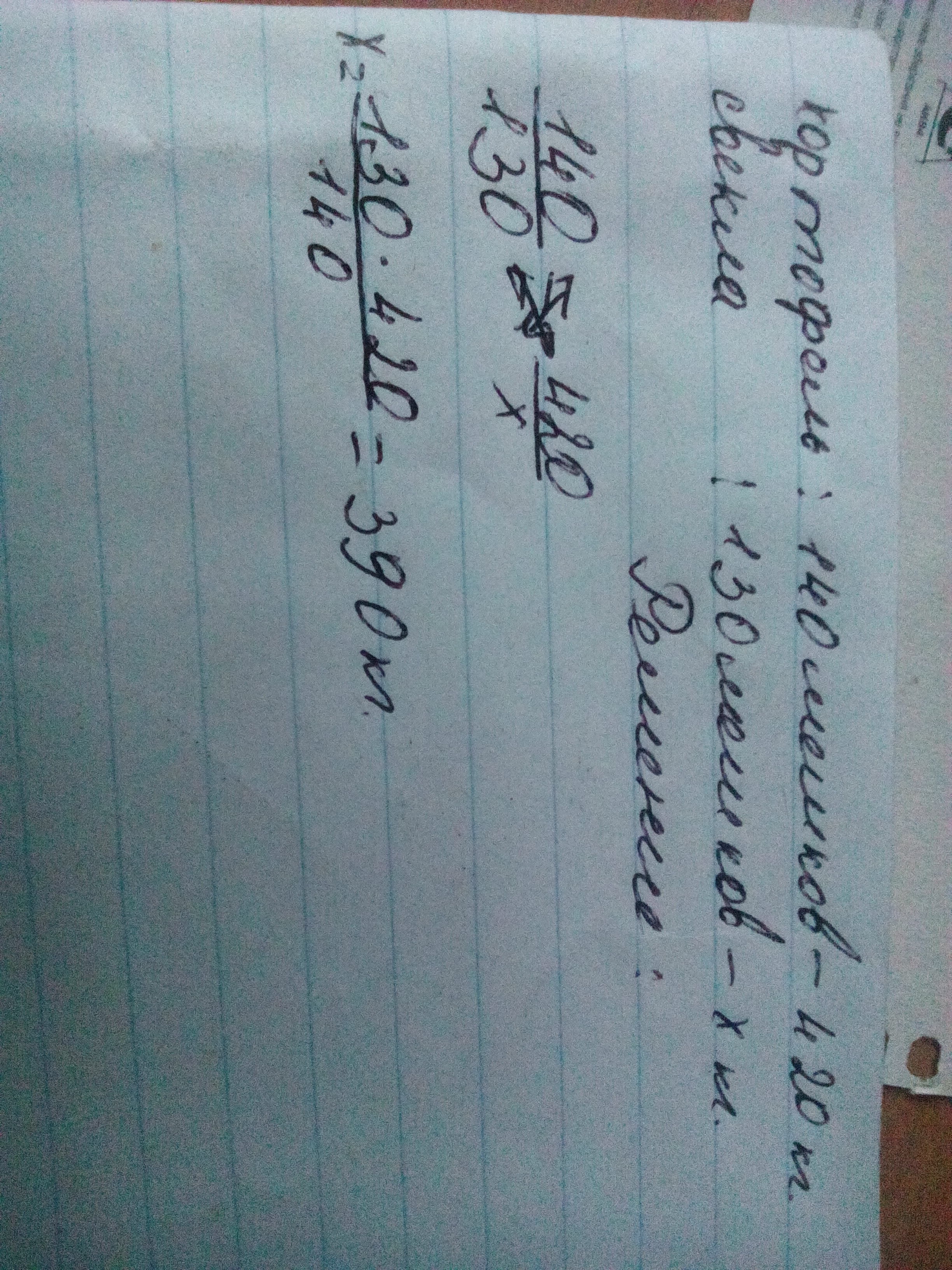 В столовую привезли 140 одинаковых пакетов с картофелем и 130 таких же пакетов со свеклой.Сколько килограммов свеклы привезли в столовую если картофеля привезли 420 кг