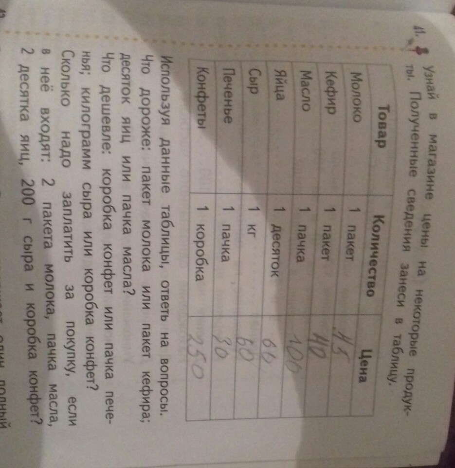 узнай в магазине цены на которой продукт на некоторые продукты полученные из видео занеси в таблицу