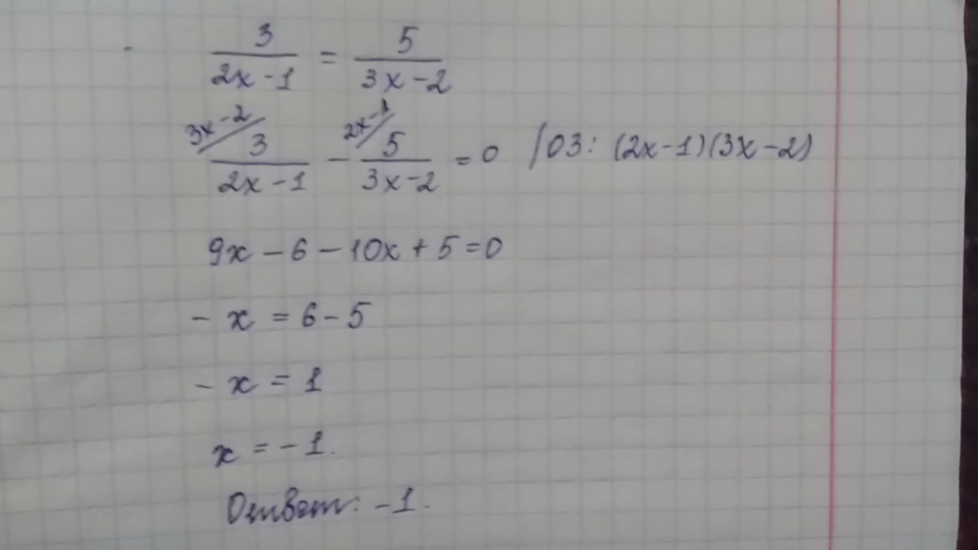 решите уравнение 3/2x-1=5/3x-2 /- дробная черта