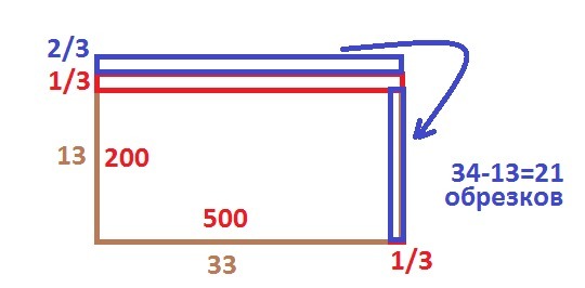 2) a = 500 : 15 = 33 1/3 = 33 шт и в обрезках 33 шт.