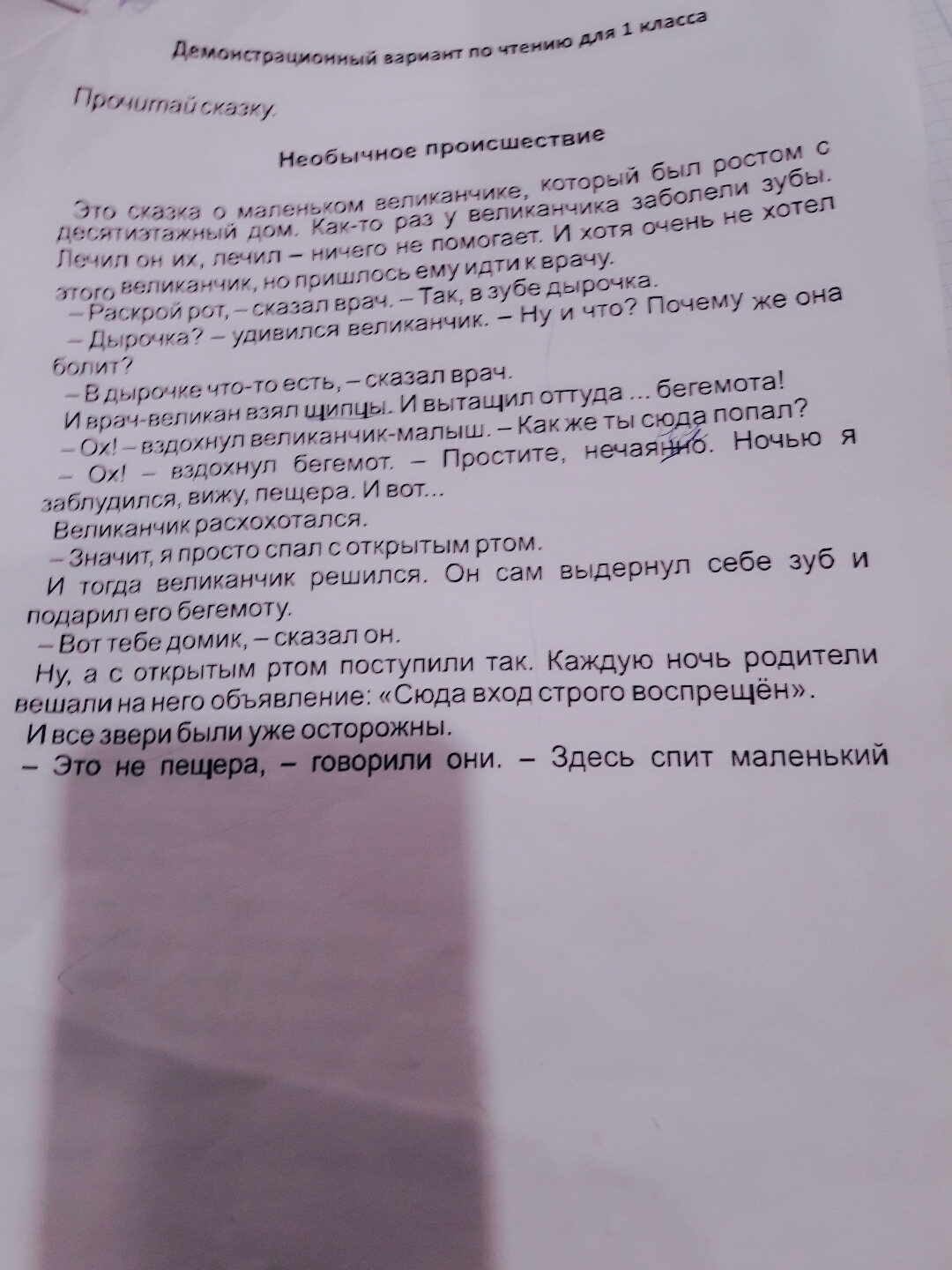 Этот вопрос из демонстрациодного варианта по чтению для 1 класса. Вот текст. Ответьте: Сказочный великанчик был очень большого роста. Что в тексте помогло тебе понять это? Приведи два примера.