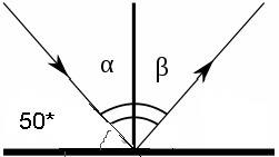угол падения α =90°-50°=40°
