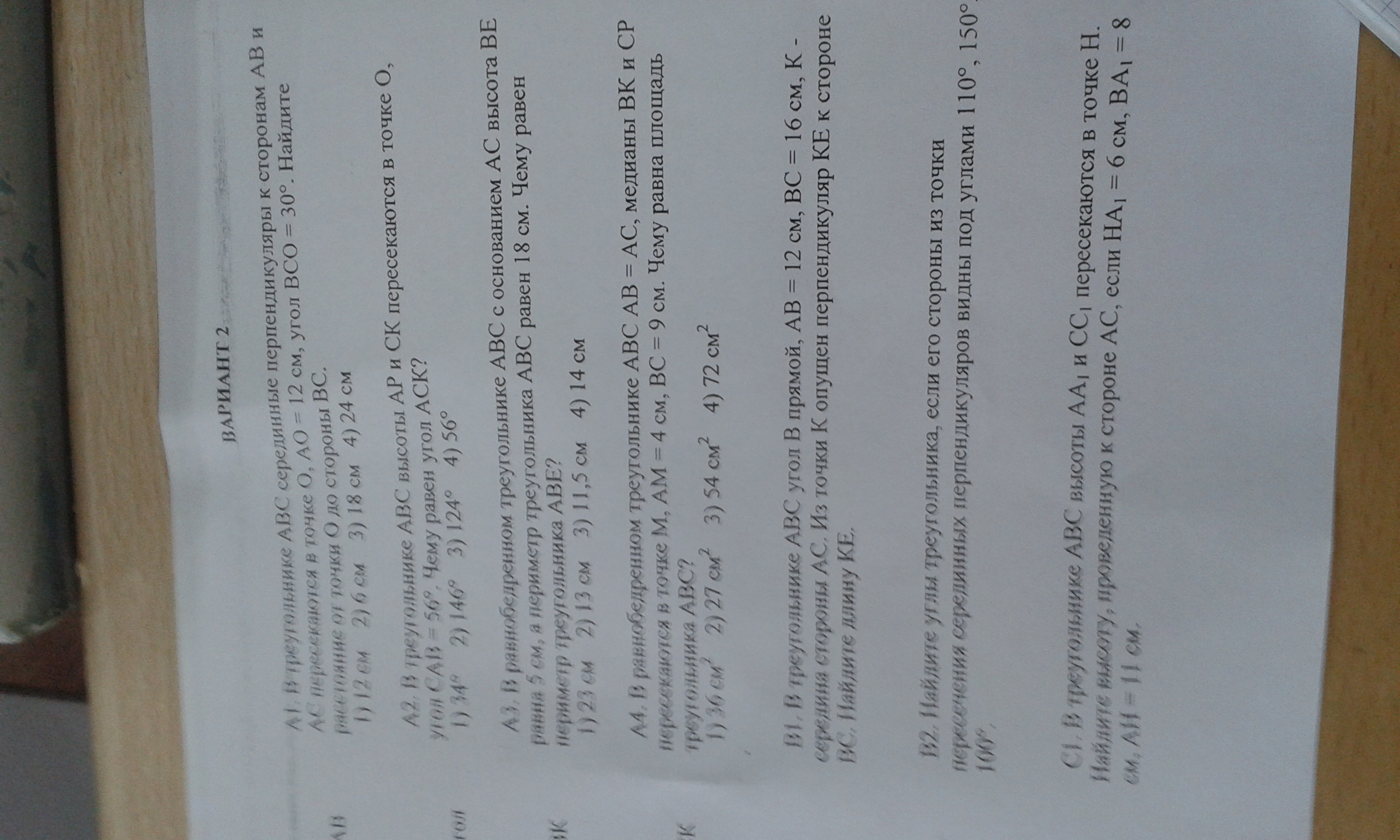 в треугольнике ABC серединные перпендикуляры к сторонам AB иACпересекаются в точке O,AO=12см,угол BCO=30градусам.Найдите расстояние от точки O до стороны BC?