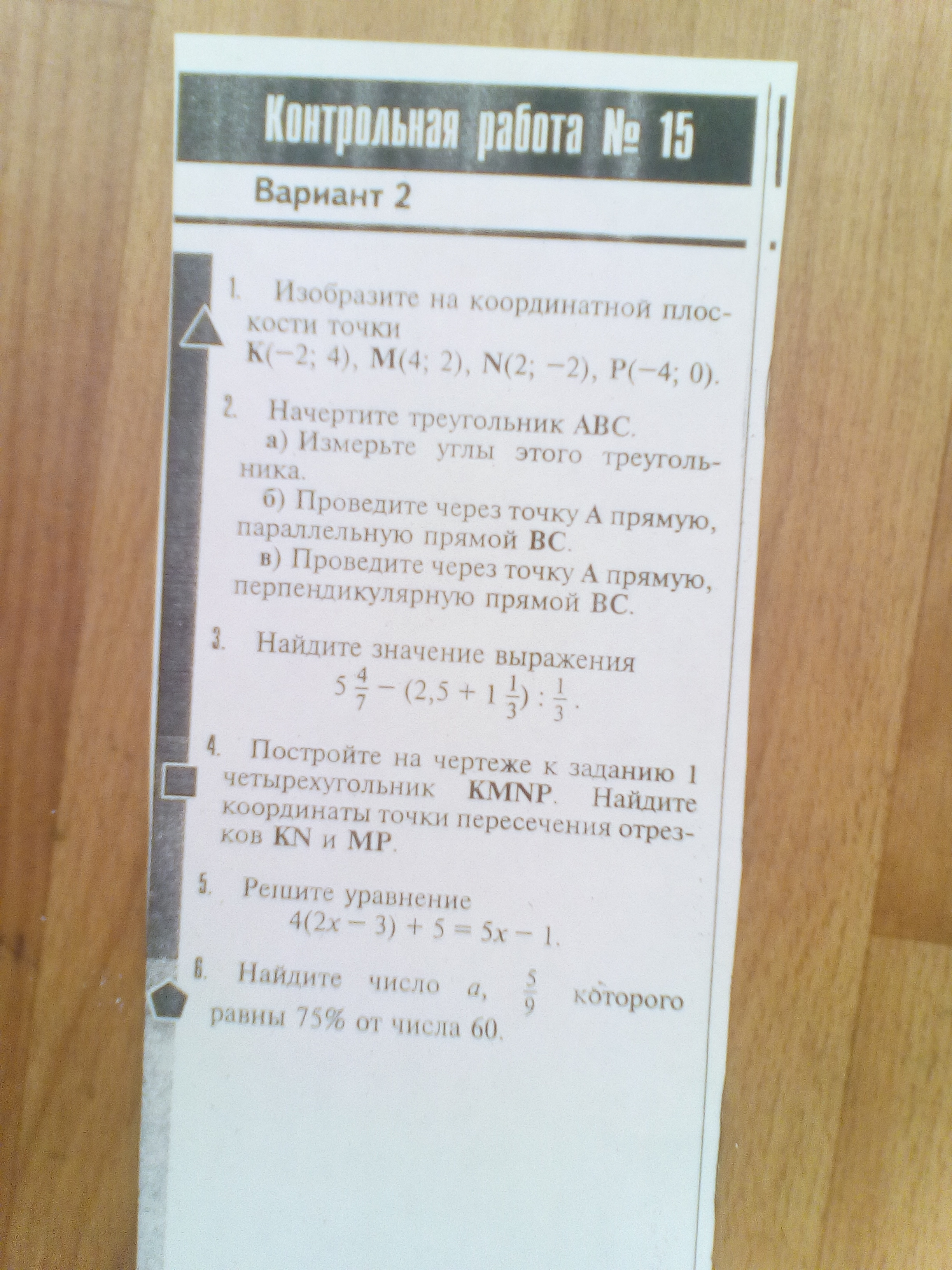 4) Постройте на чертеже к заданию 1 четырехугольник KMNP. Найдите координаты точки пересечения отрезков KN и MP.