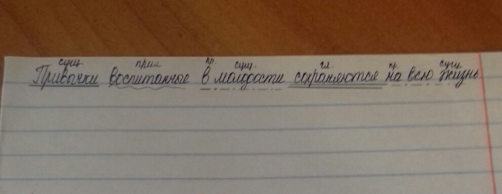 Разберите синтаксически предложение. Привычки воспитанные в молодости сохраняются на всю жизнь.