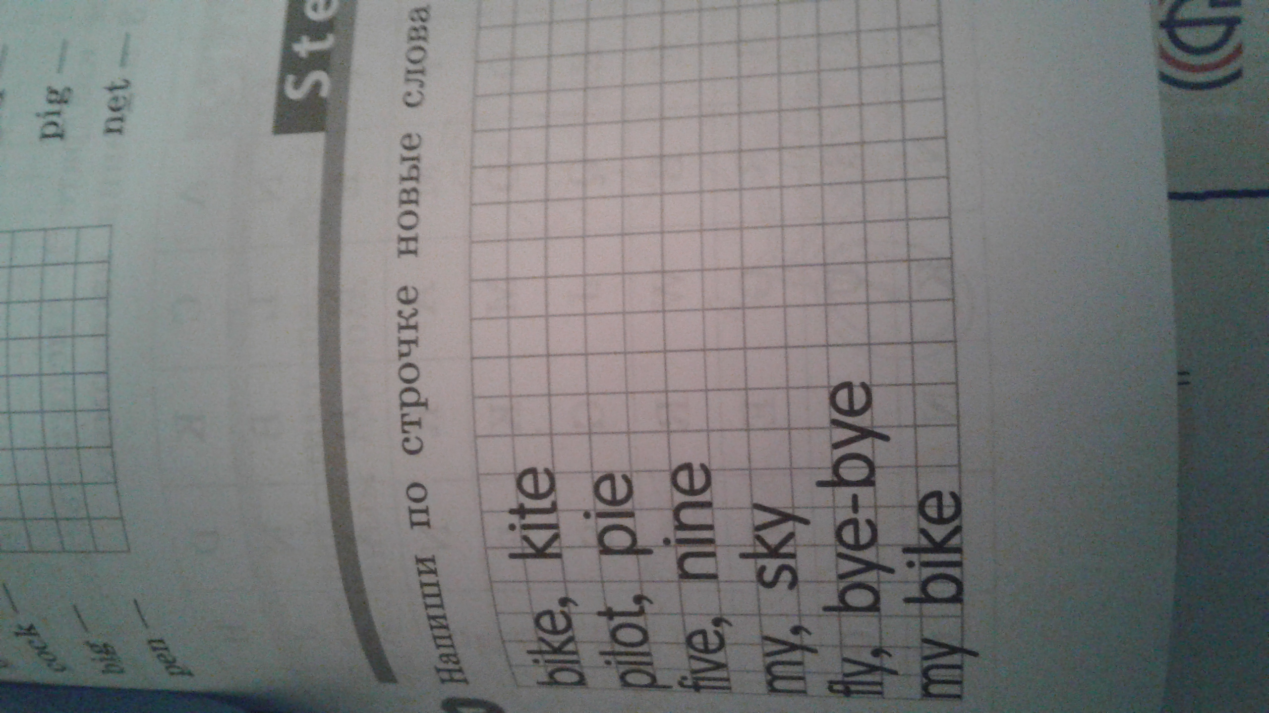 Ты в тетради должна просто прописать слова, вот так: bike, kite, bike, kite.