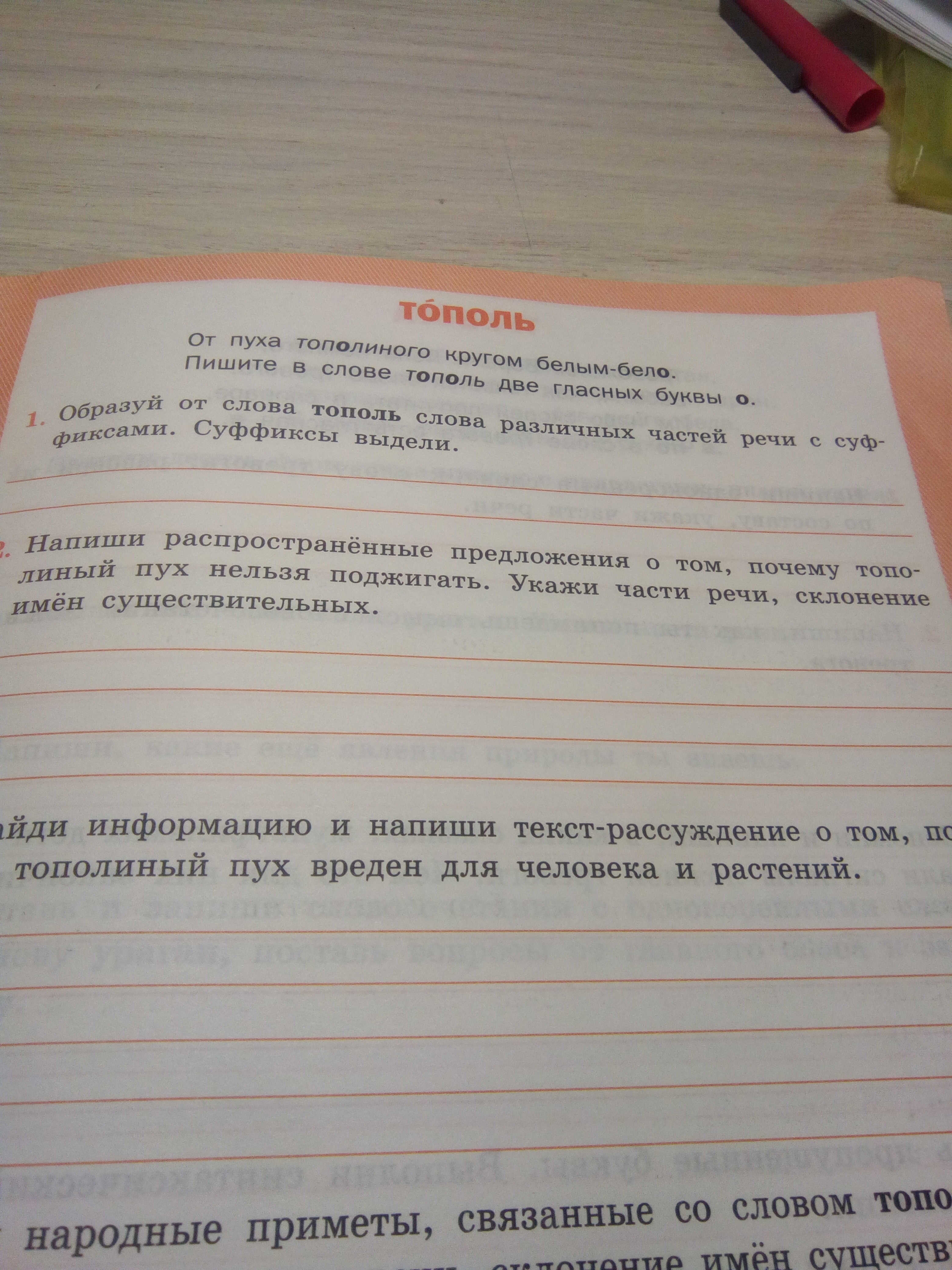 Образуй от слова тополь слова различных частей речи суффиксами.