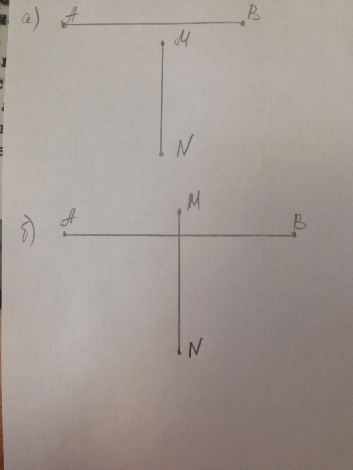 В обоях случаях отрезки перпендикулярны, но выполнены оба условия