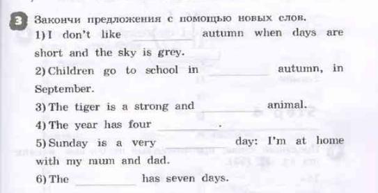 закончи предложения с помощью новых слов I dont like _____ autumn when days are short and the sky is grey