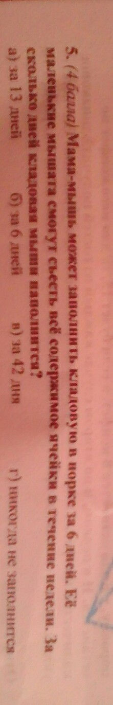 мама мышь можно заполнить кладовую в норке за 6 дней не ем маленькие мышата смогут съесть всё содержимое ячейки в течение недели За сколько дней кладовая мыши наполнится