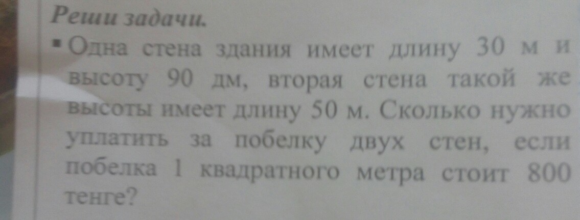 Если побелка одного квадратного метра = 800 тенге, то