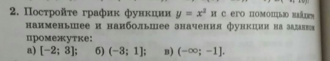 График функции - парабалла . Нужно принять значения x,y ; y=1,2,0,-1,-2 , тогда х=1,4,0,1,4 ; Рисуешь парабаллу и принимаешь например 2 клетки за 1 и рисуешь парабаллу