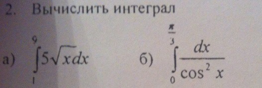 а) (1..9)∫5√x dx= 5*((2x^1,5)/3)|(1...9)= (10*9^1,5)/3 - (10*1^1,5)/3=260/3