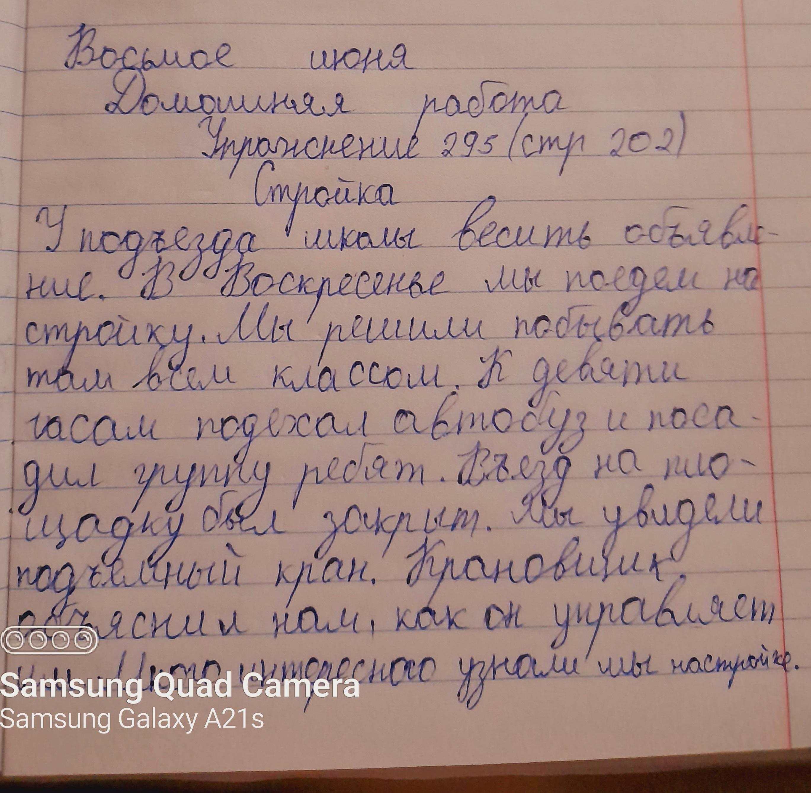 У поъезда школы весить объявление.В Воскресенье мы поедем на стройку.Мы решили побывать там всем классом.К девяти часам подехал автобуз и посадил группу ребят.Въезд на площадку был закрыт.Мы увидели подъемный кран.Крановщик объяснил нам,как он управляет им.Много интересного узналимы им.