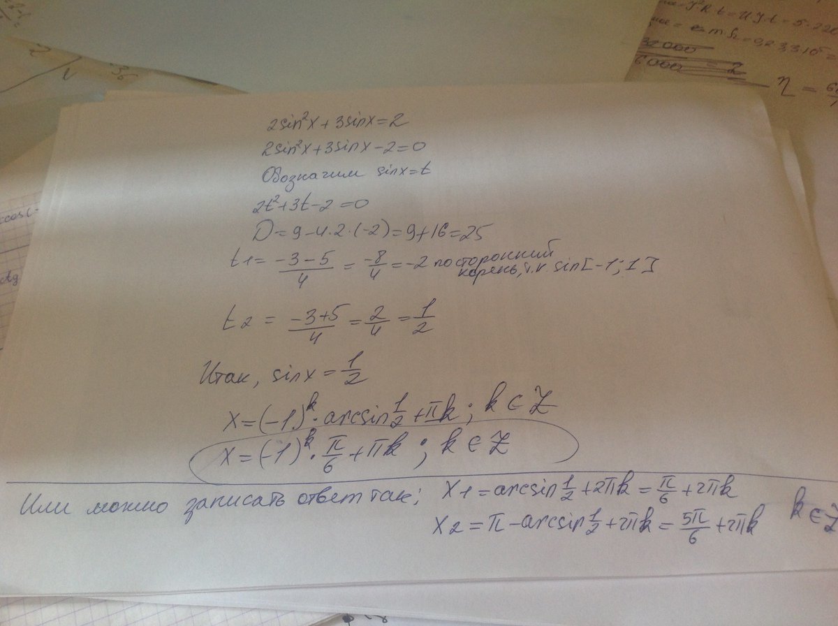 2sin ^2 x + 3 sin x =2