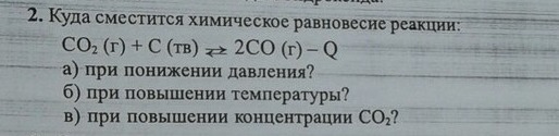 1. Поскольку реакция экзотермическая, то повышение температуры приводит к смещению равновесия в сторону исходных продуктов, то есть влево, а понижение - вправо