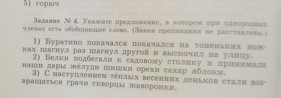 Задание:укажите предложение,в котором при однородных членах есть обобщающее слово.(знаки препинания не расставлены)
