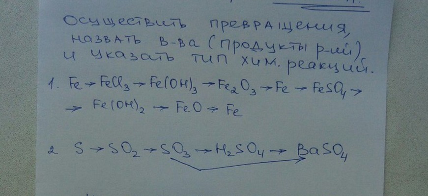 Осуществить превращения, назвать в-ва (продукты реакций) и указать тип химических реакций. Формулы на фотографии. В заранее спасибо большое