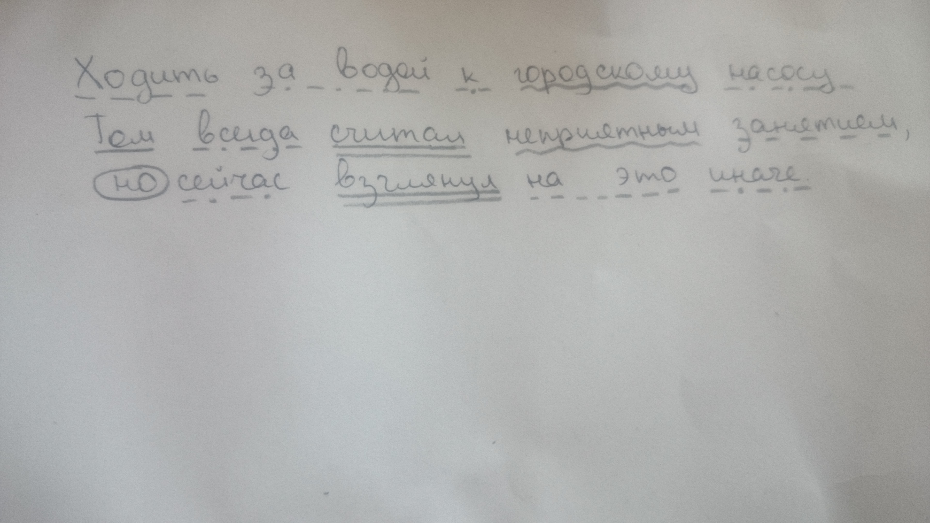 Сделать синтаксический разбор предложения. Ходить за водой к городскому насосу Том всегда считал не приятным занятием, но сейчас он взглянул на это иначе