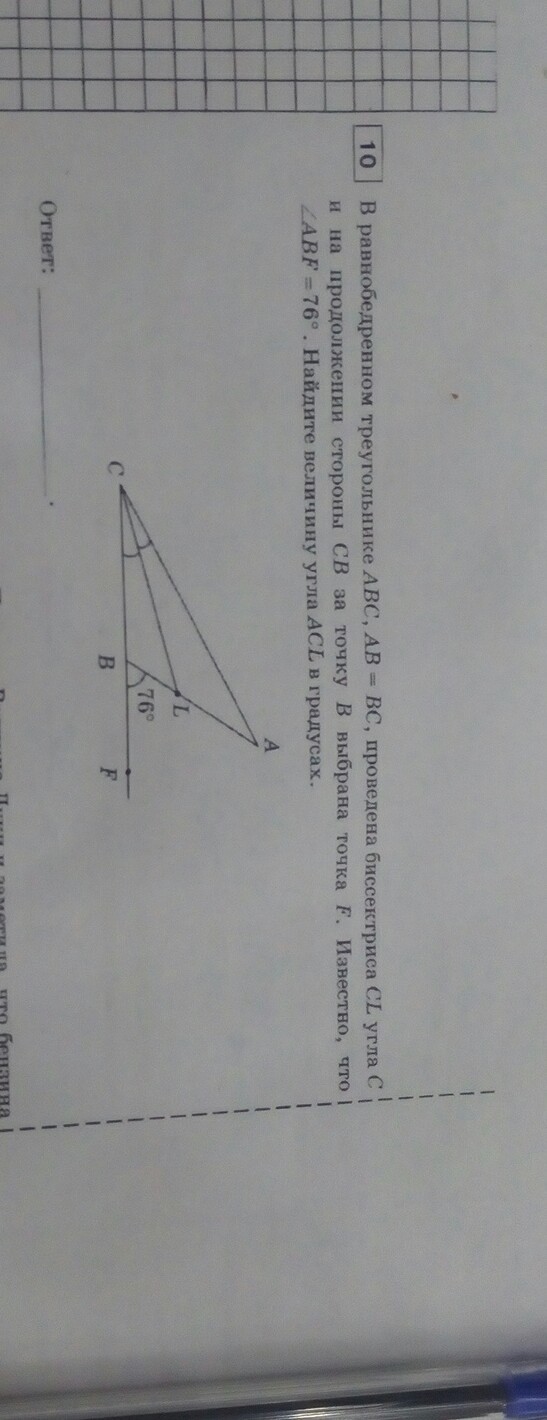 AB=BC (180°-76°)= 104°= вершина АВС значит