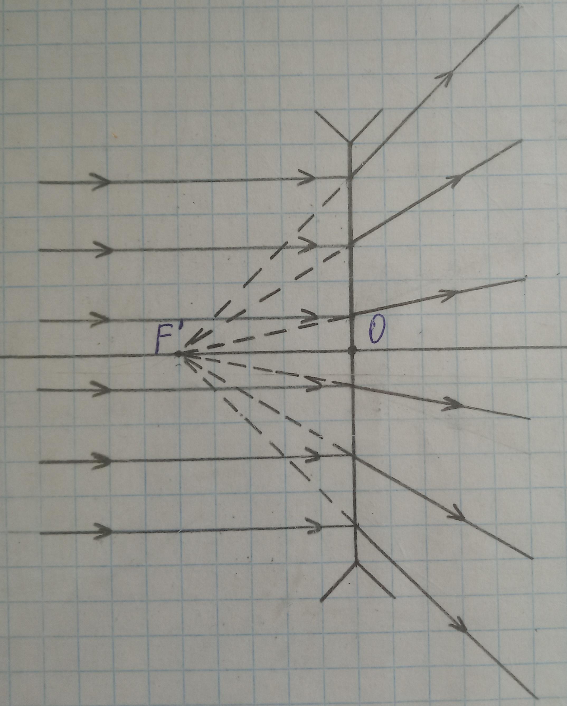 Да у рассеивающей линзы есть фокус , но он мнимый то есть его как бы нет , но мы представляем , что он как будто бы есть ( прикреплю фотографию с наглядным примером мнимый фокус будет обозначаться как F' )