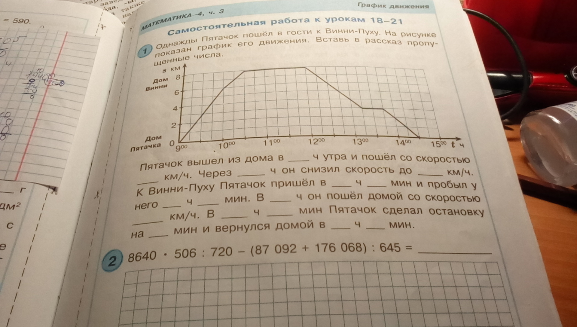Однажды Пятачок пошел в гости к Винни пуху На рисунке показан график его движения вставь в рассказ пропущенные числа