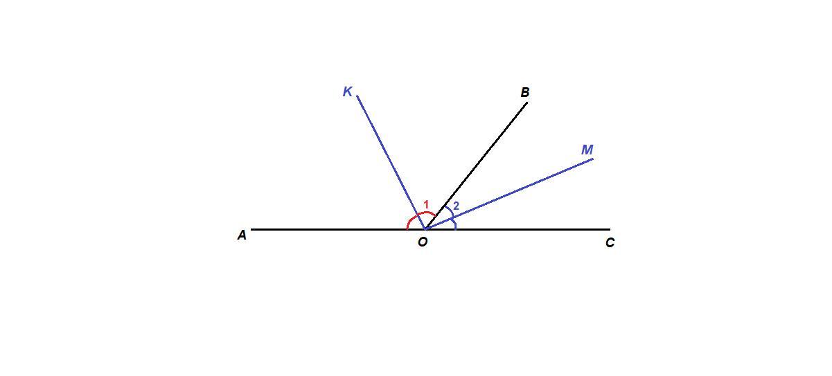 ∠КОМ - угол между биссектрисами смежных углов.