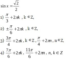 смотрим на тригонометрический круг. Sin x = √(2)/2 в точках п/4 и 3п/4.