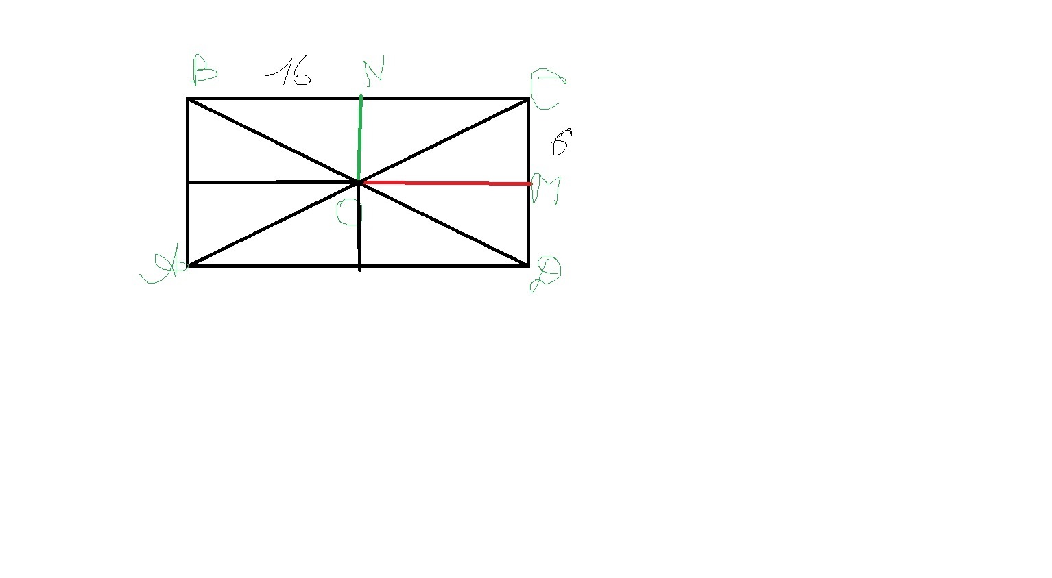 из приложенного рисунка хорошо видно, что ОN равно половине длины стороны АД, а расстояние ОМ- половине длины СД, т е 8 и 3 см, ответ А