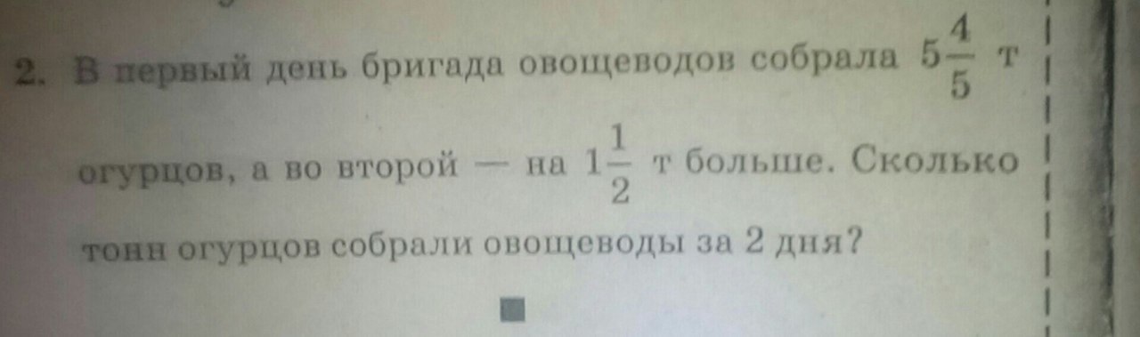 2) 5.4/5+7.3/10=5.8/10+7.3/10=12.11/10=13.1/10 т собрали за 2 дня.