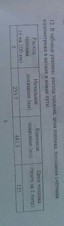 По данным таблицы определите сумму, потраченных водителем на топливо (ответ округлые до целого ) А) 1400 тенге В) 1398 тенге С) 1397 тенге D) 1401 тенге Е) 1399 тенге