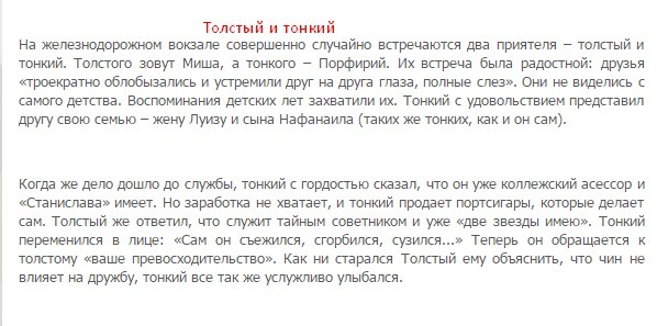 Ребята, помогите пожалуйста. Очень срочно нужны краткие содержания рассказов, а именно: Хамелион, урок французского языка, чудесный доктор, толстый и тонкий,поездка в прошлое. Помогите пожалуйста