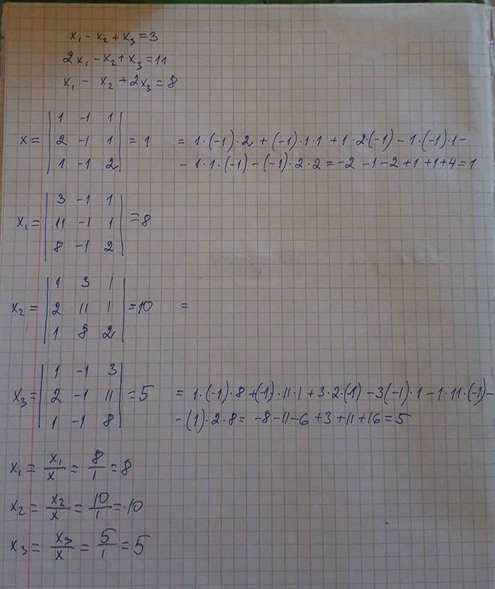 Помогите решить пожалуйста, очень срочно надо !!! Решите систему уравнений по формуле Крамера :