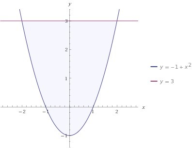 найдите площадь фигуры ограниченной линиями у=х^2 -1 у=3