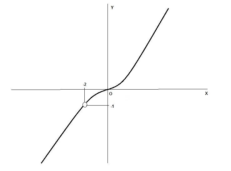 При x < 0 это ветвь вниз y = -0,25x^2 с выколотой точкой M0(-2; -1)