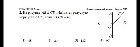 Угол АОД равен 90°, а угол ЕОД по условию 48°.