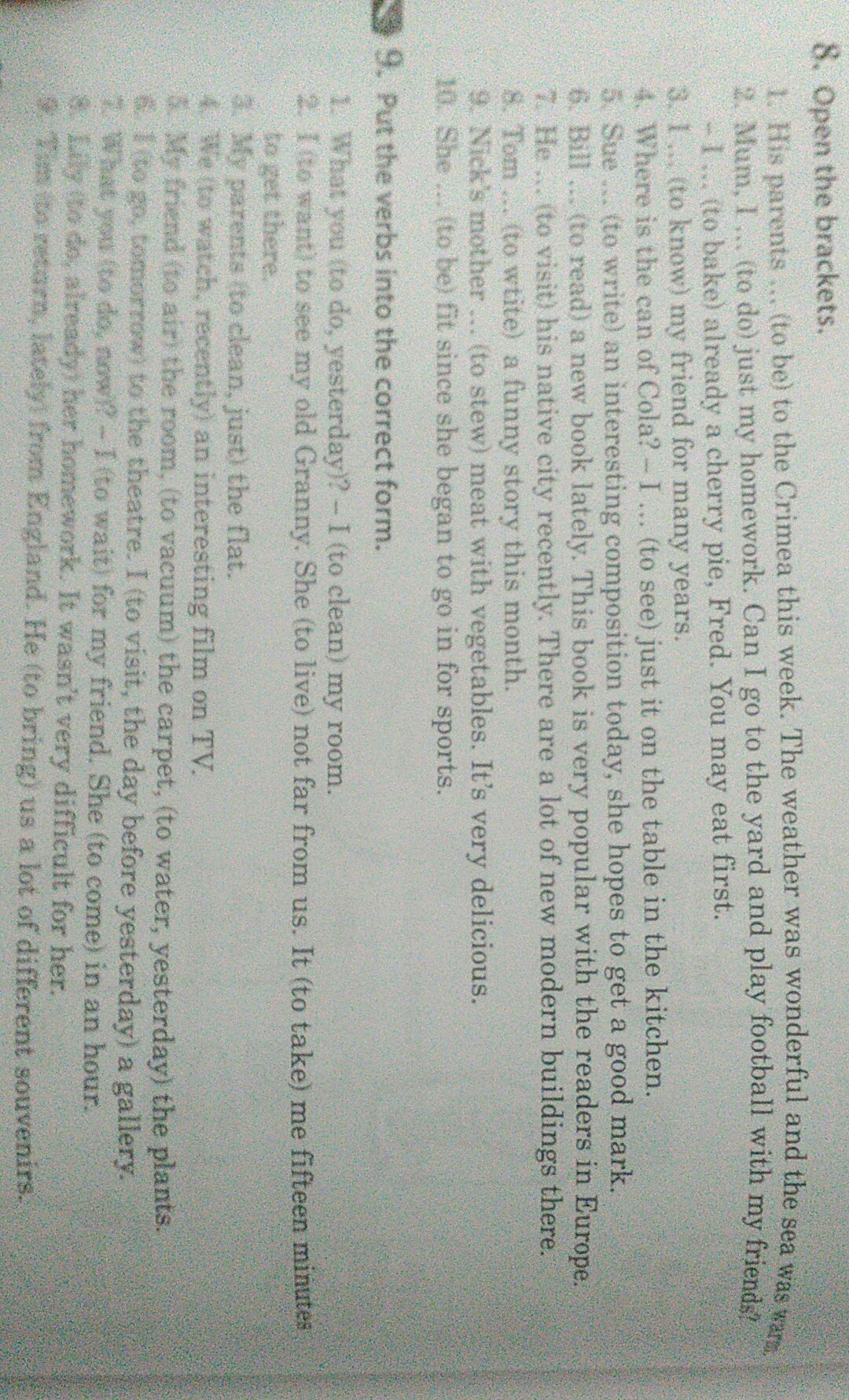 1 His parents have been to the Crimea this week. The weather was wonderful and the sea was warm.