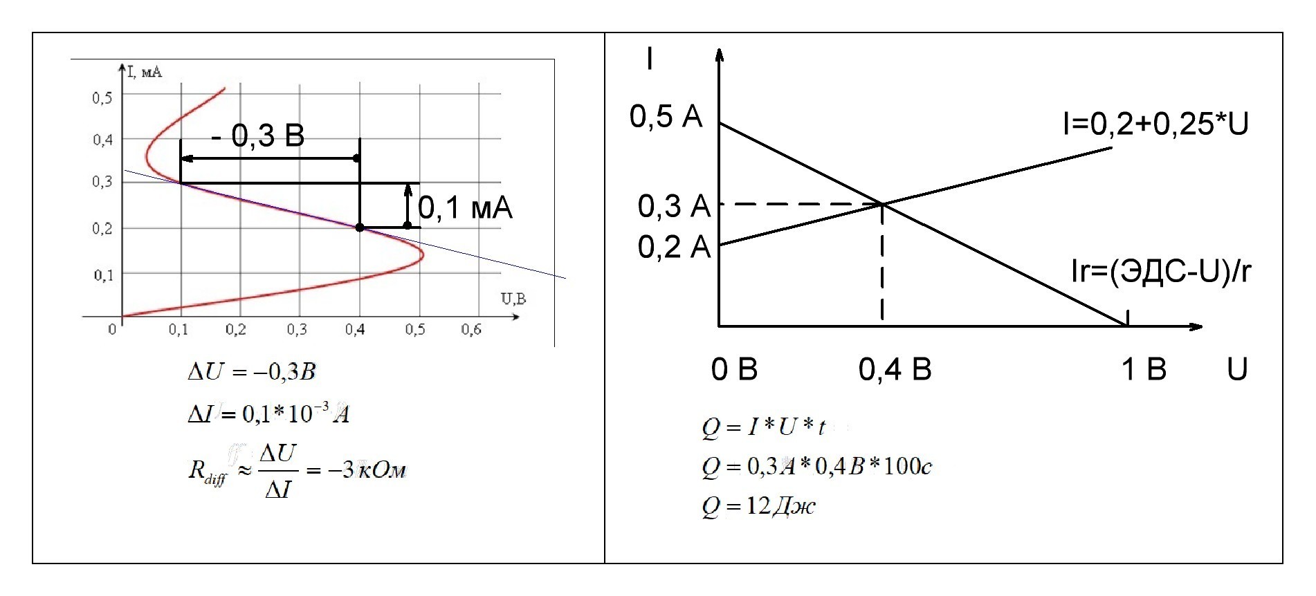2)Вольт-амперная характеристика нелинейного элемента задана уравнением I=0,2+0,25U (сила тока в Амперах, напряжение в Вольтах). Какое количество теплоты выделится на данном нелинейном элементе за 100 с, если его подключить к источнику с ЭДС E=1,0 В и r=2 Ом? Ответ выразить в Дж.