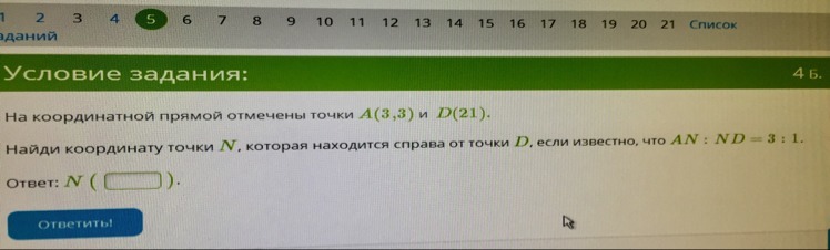 N с координатой 4