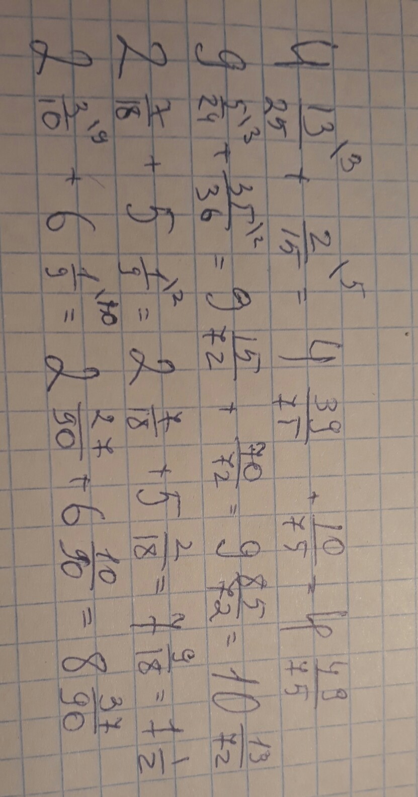 4 целых 13/25 + 2/15=