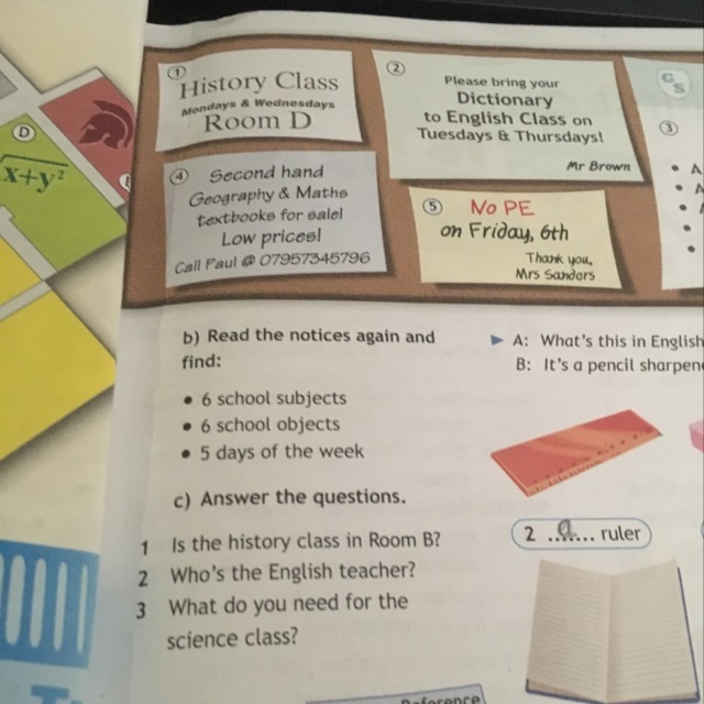 b)1.history,geography,maths,english,...(там дальше не видно,повыше сфоткать надо)
