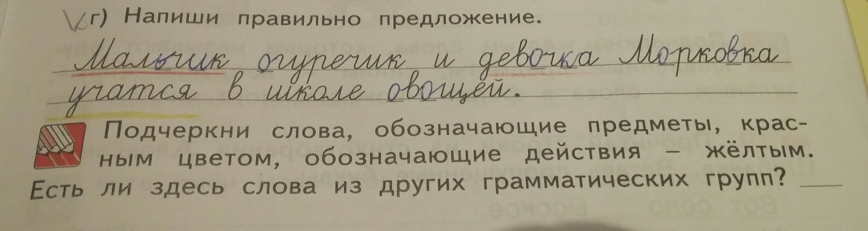 Огуречик, Морковка, в школе, овощей - всё подчеркнуть красным цветом