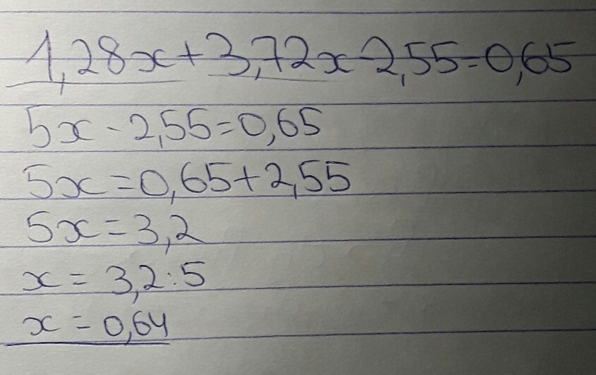 1,28x+3,72x-2,55=0,65