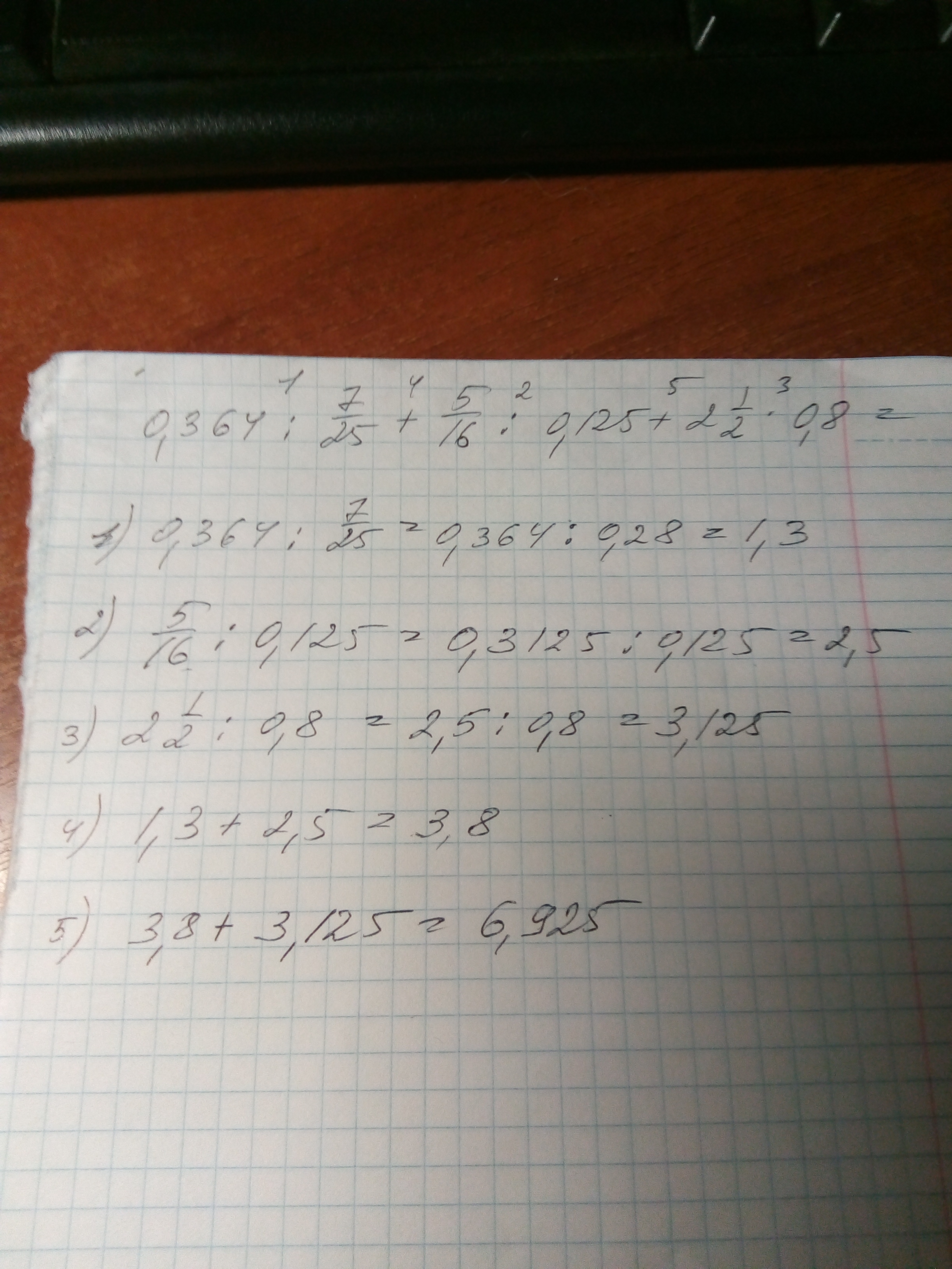 1) 0,364 : 7/25 = 0,364 : 0,28 = 1,3