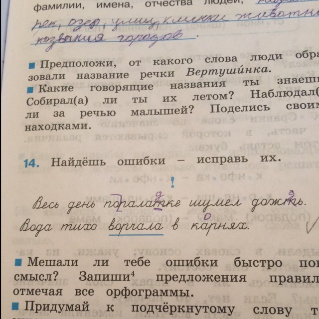 Вода Подлежащее,ворчала сказуемое. В корнях существительное, тихо прилагательное. Весь местоимение день существительное