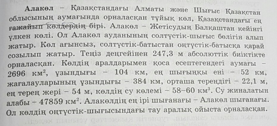 Алакөл туралы негізгі жёне көмекші етістіктерді пайдаланып, шағын мəтін құраңдар