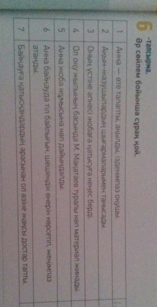 4. Ол оқу жылының басында кім туралы көп материал жинады? (немесе «Ол қашан М.Мақатаев жайлы көп материал жинады?», «Оқу жылының басында ол не істеді?»)